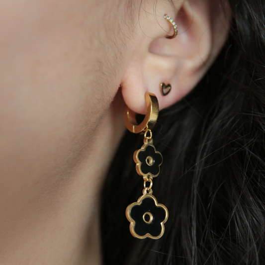 Boucles d'oreilles pendantes fleurs noires - Flora