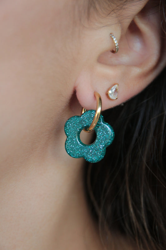 Boucles d'oreilles fleurs paillettes bleu canard - FLORA