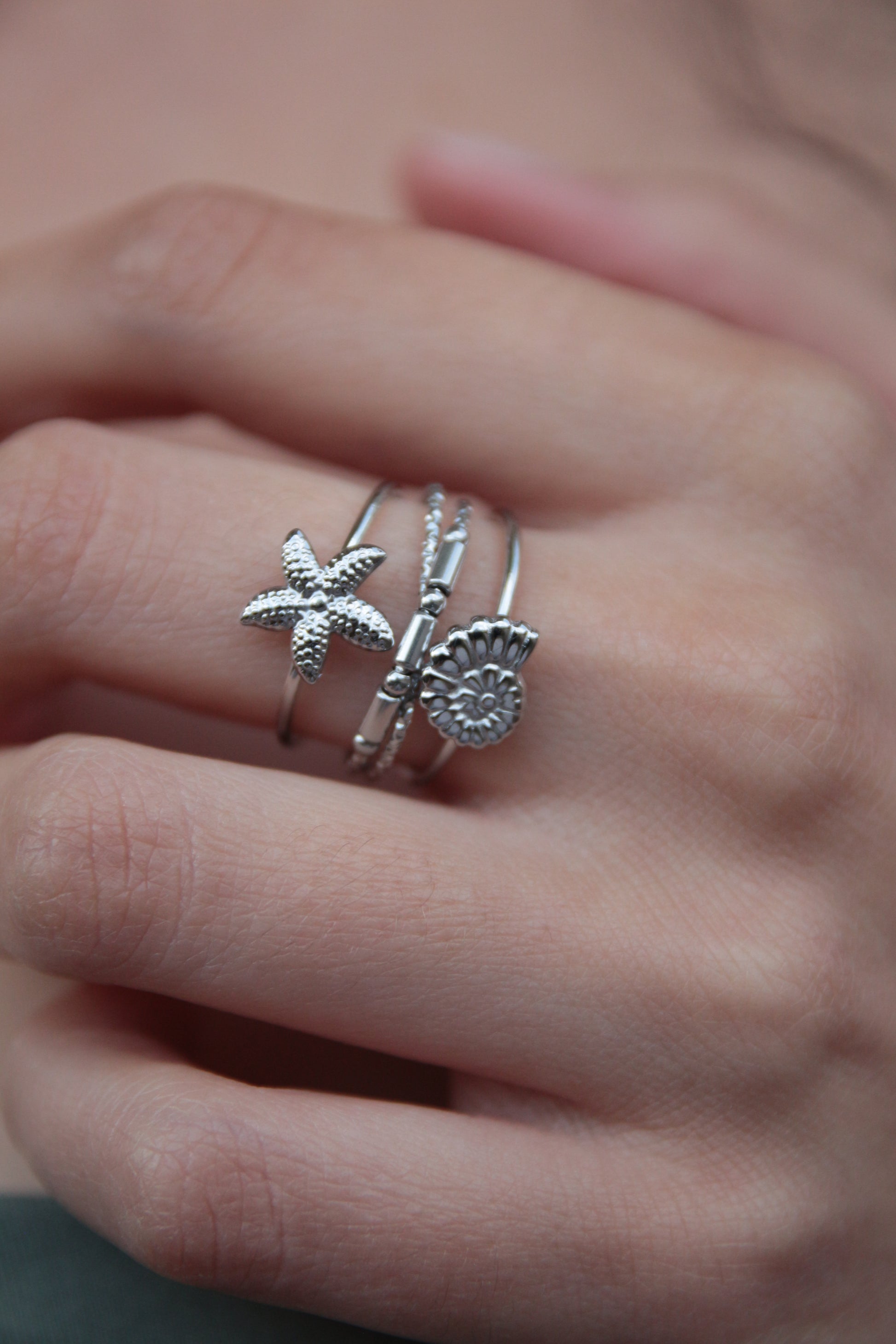 Cette bague étoile de mer et coquillage capture l’esprit des plages ensoleillées et des promenades en bord de mer. Inspirée des trésors de l’océan, elle marie deux symboles phares : l’étoile de mer finement texturée et le coquillage délicatement sculpté. Le tout dans un fini argenté lumineux qui apporte lumière et éclat à votre main. Parfaite pour les amoureuses de l’été et de la mer, cette bague est un bijou qui raconte une histoire.