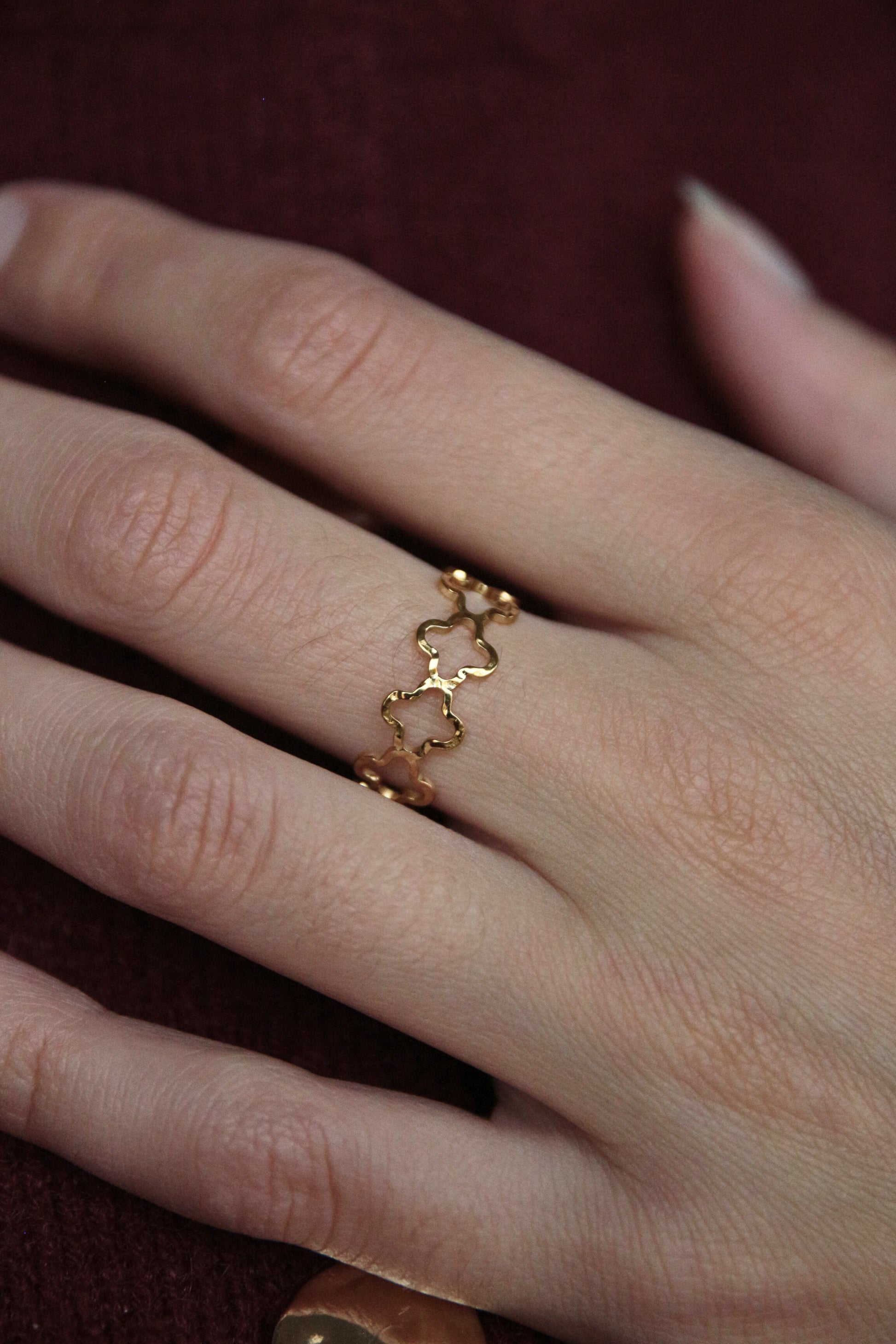 – Design : Motifs trèfles ajourés tout autour de la bague