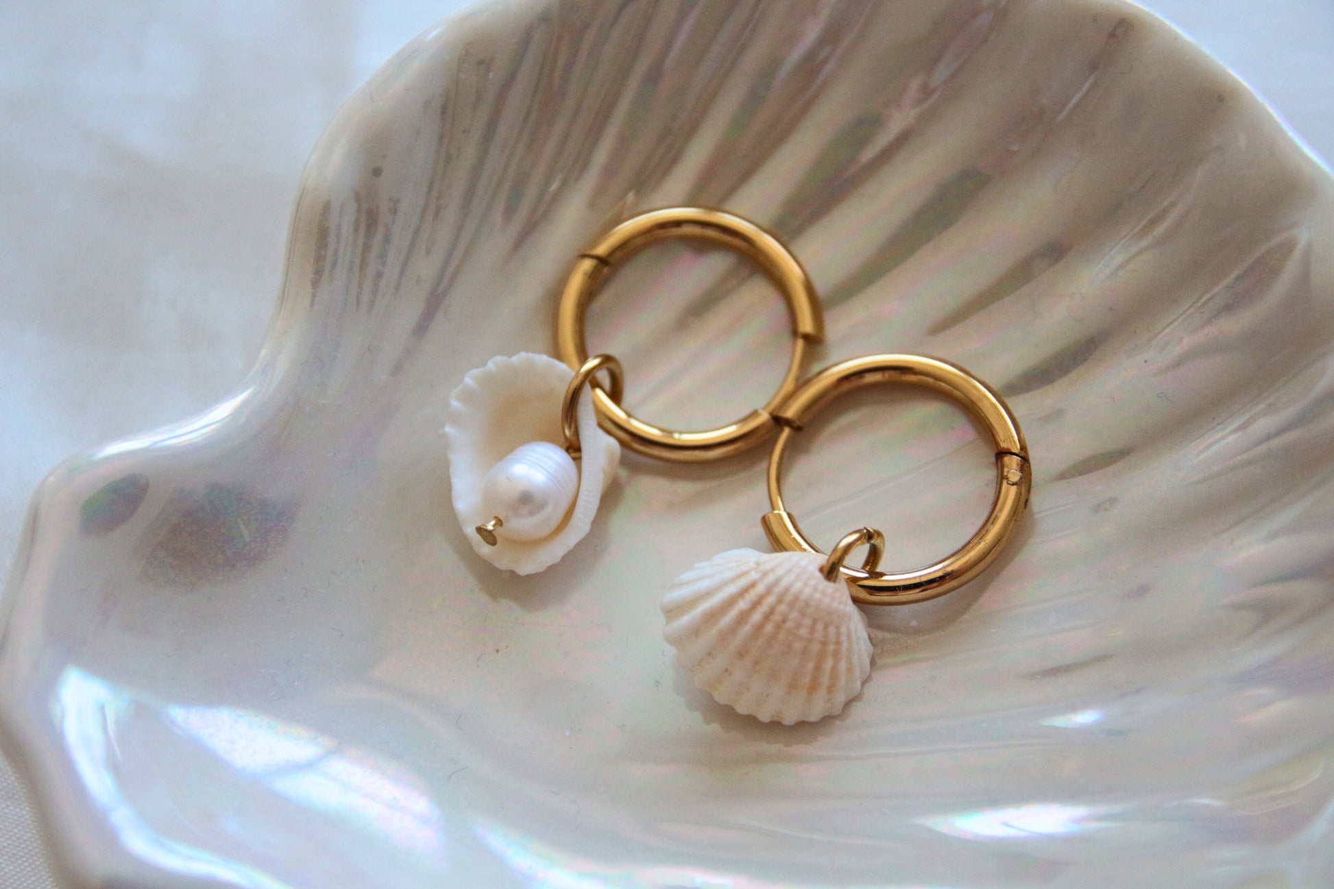 Ces boucles d’oreilles faites main capturent toute la magie de l’océan. Chaque pièce met en scène un véritable coquillage naturel, soigneusement perçé à la main, avec au centre une perle d’eau douce délicatement insérée. Le rendu donne l’illusion précieuse et poétique d’une perle née au cœur du coquillage, comme un clin d’œil à la nature elle-même.