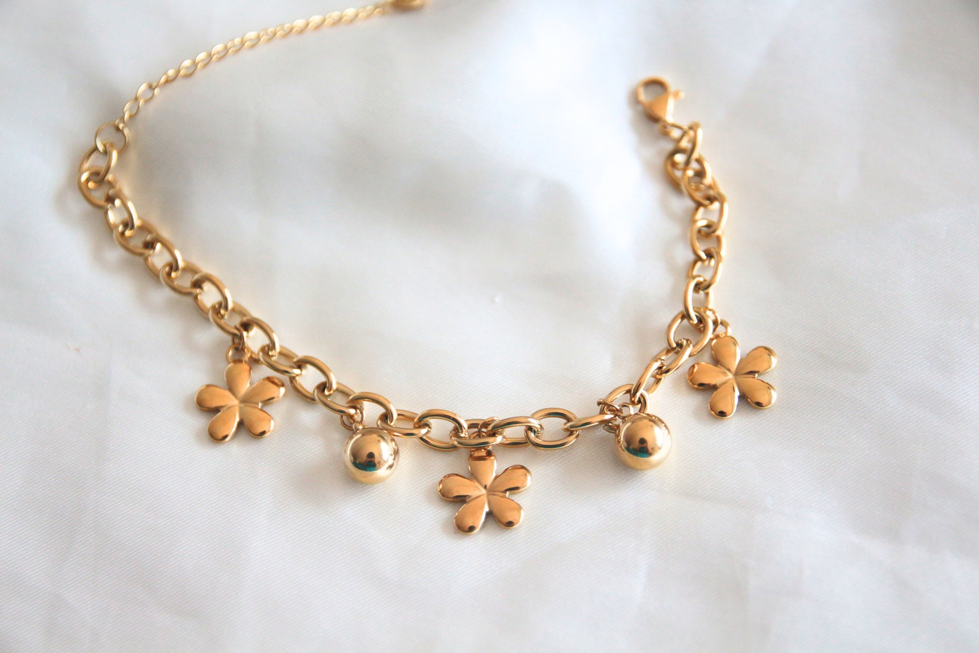 🌟 Bracelet Doré – Breloques Fleurs & Boules