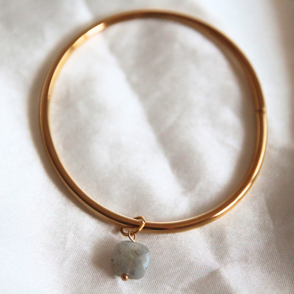 Grâce à son design épuré, ce jonc s'adapte aussi bien aux looks chics et élégants qu'aux tenues plus décontractées. Sa silhouette fine en fait un bijou idéal à porter au quotidien, seul pour une allure minimaliste ou en accumulation avec d'autres bracelets pour un effet tendance. La perle pendante ajoute du mouvement et de la délicatesse, attirant subtilement la lumière à chaque geste. Facile à enfiler grâce à sa structure ajustée, ce bracelet est parfait pour celles qui recherchent une pièce pratique et raffinée à ajouter à leur collection de bijoux.