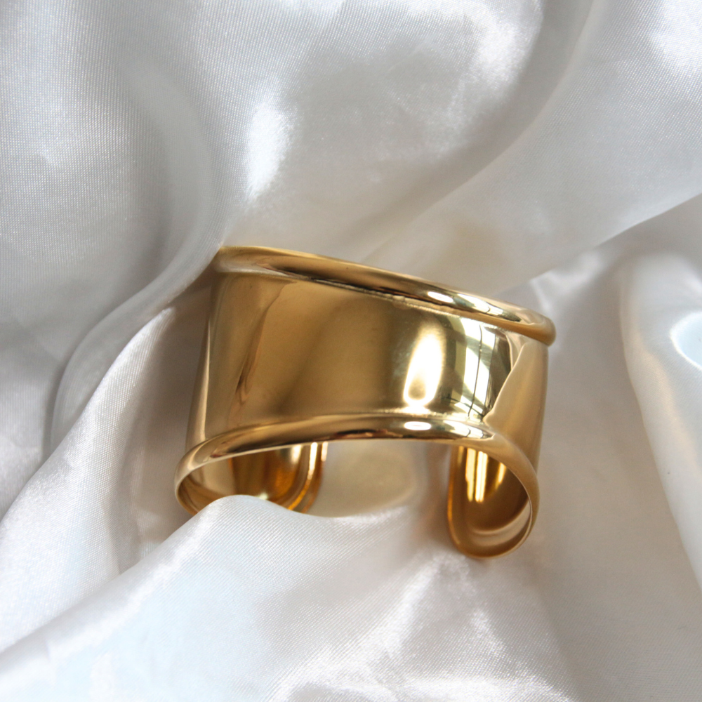 La manchette dorée Naïlya est un accessoire de mode audacieux et élégant, fabriqué en acier inoxydable de haute qualité pour assurer une durabilité optimale et un éclat constant. Son design épais et structuré en fait une pièce centrale qui attire immédiatement l’attention. Le fini doré ajoute une touche de luxe et de sophistication, ce qui en fait un choix parfait pour compléter une tenue chic et moderne. Que ce soit pour un look de soirée ou pour un ajout subtil à une tenue quotidienne, cette manchette est un choix idéal pour celles qui aiment afficher un style affirmé.