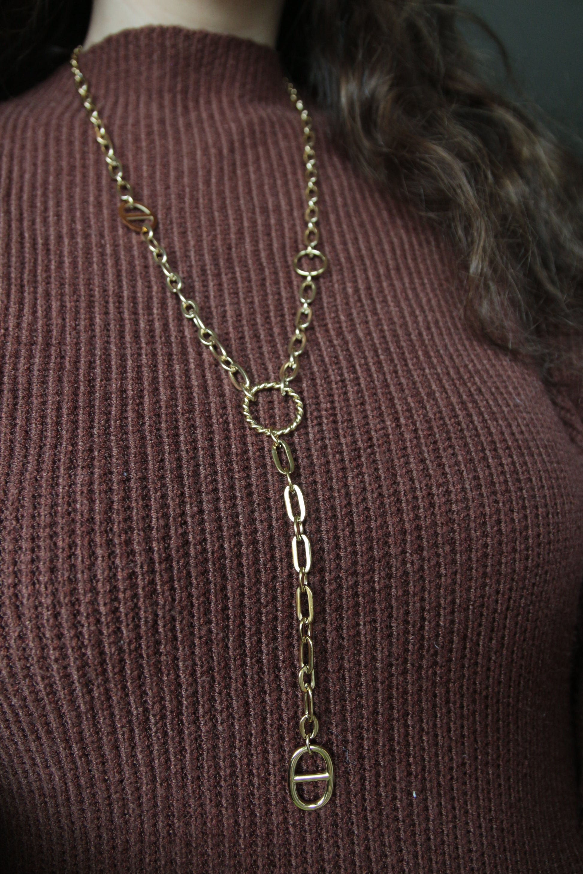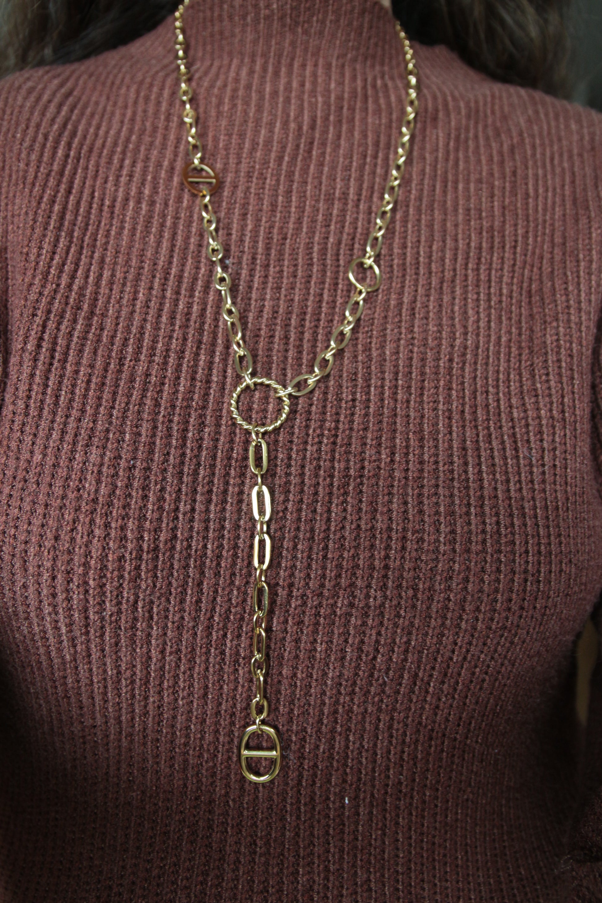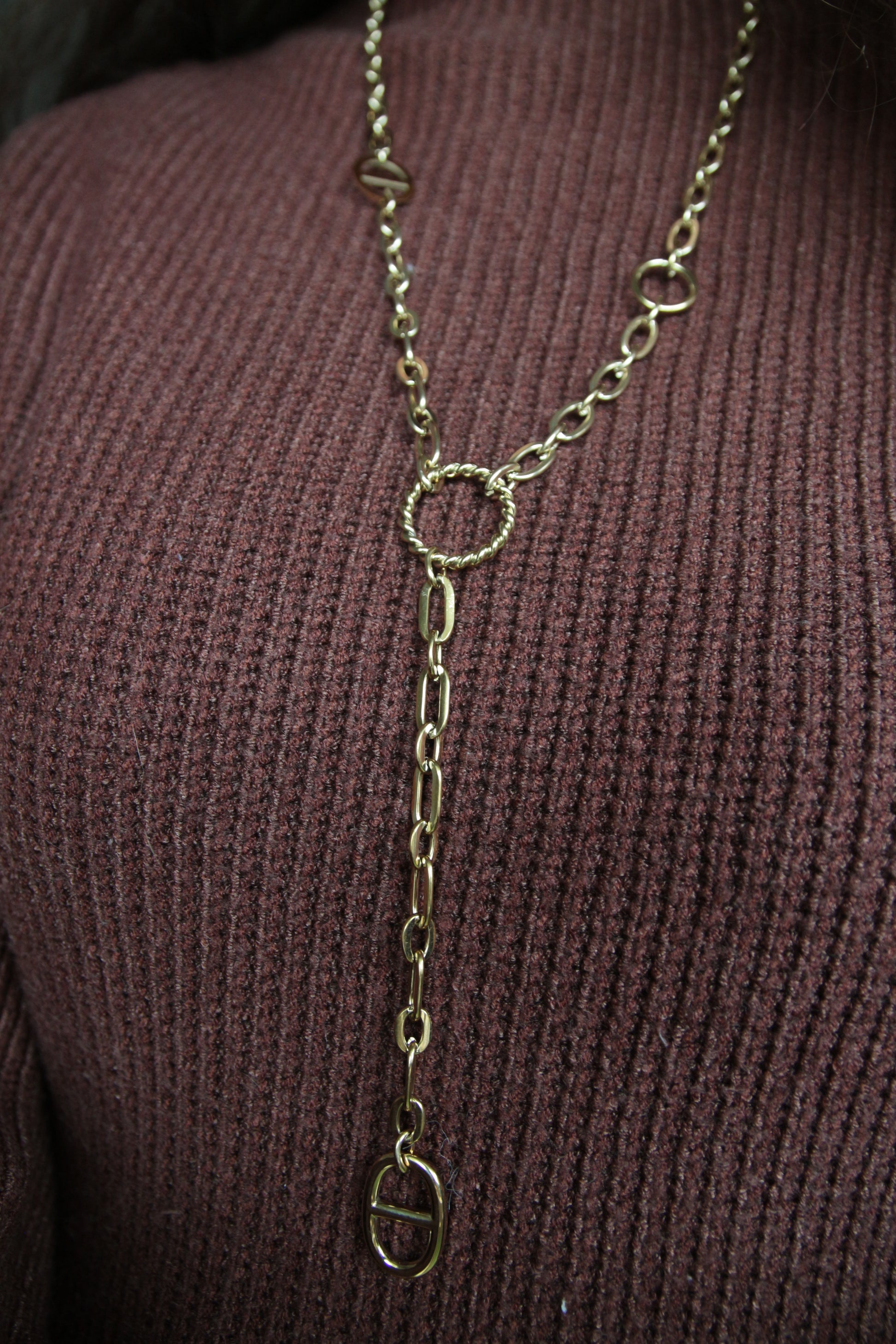 Magnifique sautoir en Y doré à maille épaisse.
